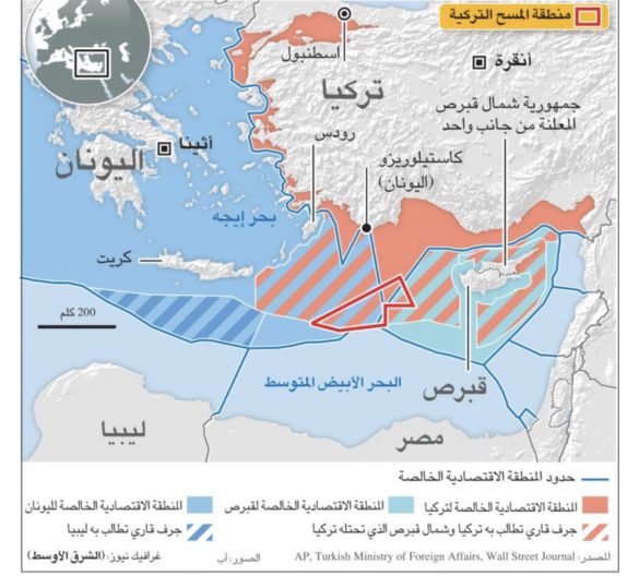 وهددت تركيا بمنع أي بحث غير مصرح به عن الغاز والنفط في منطقتها الاقتصادية في شرق البحر المتوسط.