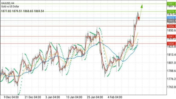 مع أن ثبات النقطة 1855 يبقى الاتجاه صاعد ومن المتوقع حدوث عملية تصحيح تستهدف 1865 على المدى القريب وتعتبر مراكز شراء مع وقف خسارة 1850 والأهداف 1891 و 1903