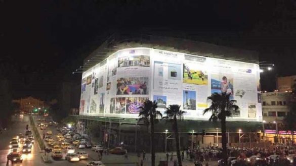 ومنذ عام 2017، جرى تحويل واجهة فندق “سميراميس” وسط العاصمة إلى صفحة جريدة ضخمة، في الوقت الذي تخبّئ خلفها أعمال الترميم والإصلاح.