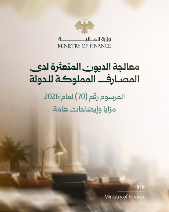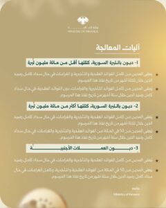 أصدر الرئيس الشرع المرسوم رقم (70) المتعلق بمعالجة الديون المصرفية المتعثرة، والتي تُقدَّر بنحو 440 مليون دولار، تعود إلى ما يقارب 218 ألف متعامل من شرائح اجتماعية واقتصادية مختلفة. ويهدف المرسوم، بحسب ما ورد، إلى تسوية هذه الديون ضمن إطار قانوني جديد يخفف الأعباء عن المقترضين ويعيد تنشيط القطاع المصرفي.